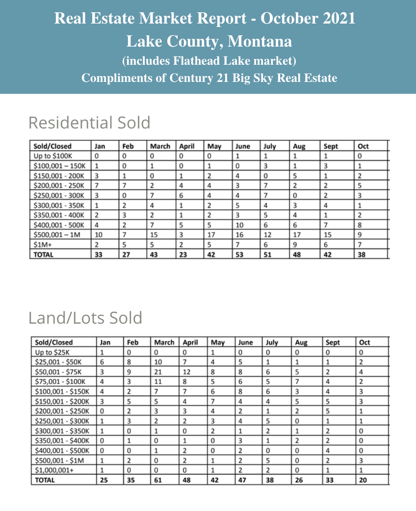 Click on Read More to view the Lake County Montana Real Estate Market Report for October 2021.